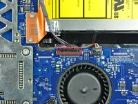 Disconnect the hard drive fan by pulling its connector away from the face of the logic board.