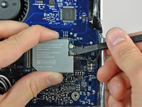 Remove the two Phillips or two T6 Torx screws securing the AirPort/Bluetooth board to the logic board.