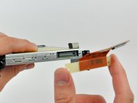 Maneuver the optical drive out of the rear case, minding the two plastic pins molded into the rear case near the open end of the optical drive that can break off.