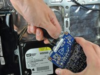 Disconnect the hard drive thermal sensor from the logic board by pulling its connector toward the top edge of the iMac.