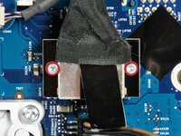 Remove the two 4.8 mm T6 Torx screws securing the display data cable to the logic board.
