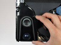Remove the single 28 mm T10 Torx screw securing the left speaker to the rear case.