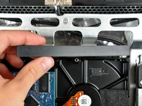 To remove the hard drive bracket, squeeze the middle against the size of the hard drive while rotating the top left edge toward yourself.