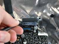 Use the attached black tab to pull the display data cable connector straight away from the logic board.