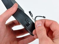 If present, remove the pieces of clear tape securing the ambient temperature sensor cable and the left speaker cable to the rear case.
