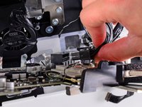 Depress the locking mechanism and carefully pull the DC-In cable out of its socket on the back of the logic board.