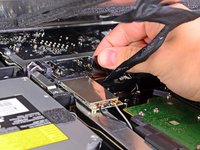 Pull the vertical sync cable connector out of its socket on the LED driver board near the top left corner of your iMac.