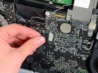 Pull the vertical sync cable connector out of its socket on the LED driver board near the top left corner of your iMac.