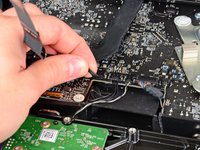 Pull the hard drive fan connector toward the top edge of the iMac to disconnect it from its socket on the logic board.