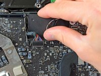 Pull the CPU fan/ambient temperature sensor connector toward the bottom left edge of the iMac and out of its socket on the logic board.