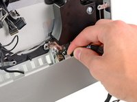 Pull the CPU fan/ambient temperature sensor connector toward the bottom left edge of the iMac and out of its socket on the logic board.