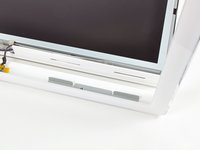 Lift the front bezel off the rear case and rotate it away from the bottom edge of the iMac, minding the camera and microphone cables still attached to its upper edge.
