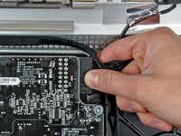 Use a pair of tweezers to pull the vertical sync ribbon cable out of its socket on the LED driver board near the top left corner of your iMac.