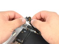 Pull the headphone jack and front-facing camera ribbon cable straight out of its socket on the logic board.