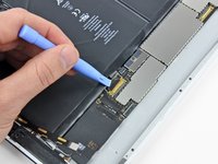 Rotate the logic board towards the center of the iPad and disconnect the last antenna at the top of the logic board.