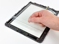 Carefully peel the adhesive securing the long side of the LCD to the display frame, then remove the LCD.