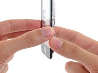 Use your fingernails to slowly lift up the left corner. The touch screen plastics are held to the touch screen with adhesive. It may take some work to free the corners.