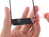 Place the second adhesive strip or double stick tape on the home button end of the front panel frame.