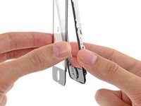 Turn the display assembly over and again carefully insert a metal spudger between the two metal rails along the edge of the display assembly. Gently rotate the spudger to lift the LCD up from the glass.