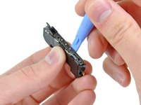 Use a plastic opening tool to lift the speaker enclosure assembly out of the case, being sure not to damage the EMI fingers on the attached Wi-Fi antenna.