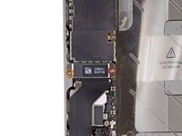 Carefully lift the logic board from the end closest to the speaker enclosure and slide it away from the top edge of the iPhone.