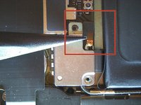 Remove the 2.6 mm Phillips screw securing the logic board near the power button.