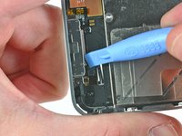 Wedge the plastic opening tool between the vibrator and the side of the iPhone.