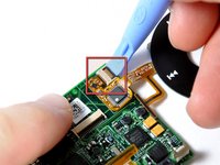 Use a small iPod opening tool to loosen the click wheel cable from the logic board. Be careful not to bend the cable too much, or the electronics on the cable could be damaged.