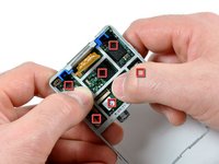 Turn the iPod over and peel the orange click wheel ground tab up from the metal framework.