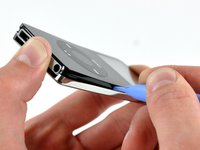 Insert the large iPod opening tool into the seam between the front case and rear panel of the iPod, below the dock connector. Run the tool back and forth to create an opening. The tool's edge should point toward the rear panel to prevent any accidental scratching of the aluminum front case.