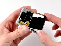 Lift the logic board assembly out of the front case from the click wheel connector side (the cable you just disconnected). Rotate the logic board assembly about the display ribbon cable and lay it next to the front case.