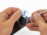 Pry up the edges of the click wheel with the guitar pick until the click wheel comes free from the case.