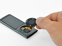 Use a plastic opening tool to pry the metal retainer out from the bottom of the iPod and remove it.