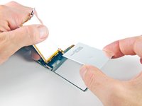 From the top of the iPod, insert a metal spudger between the outer case and the battery to remove the adhesive that holds the battery in place.