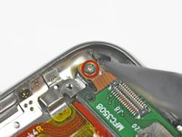 Remove the single Phillips screw securing the gold pressure contact to the logic board.