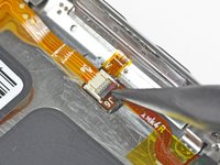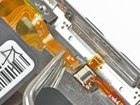 Use the tip of a spudger to remove the yellow kapton tape covering the power/volume control ribbon cable.