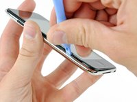 Gently insert a plastic opening tool, near the volume control buttons, between the plastic surround of the screen and the metal case.