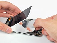 When it is sufficiently free from the display tray, remove the mylar reflector from the Touch.