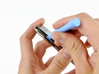 Gently insert an iPod opening tool between the glass front panel and its plastic surround near the volume adjust buttons.