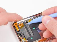 Use the tip of a spudger to remove the yellow kapton tape covering the power/volume control ribbon cable.